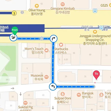 Jongno Myeongin Sweet Azuki Bean Bread bakery is located just steps from Ivy Residence hostel. The nearest underground station is Jongno 3-ga, which is around 200 metres away.
